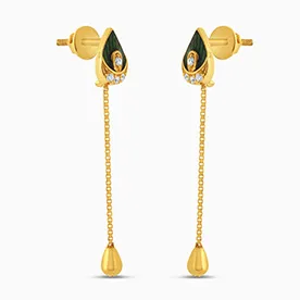 22ct Gold Leaf & Chain CZ Drop Earrings