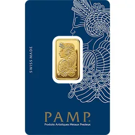 PAMP was the first precious metals brand to ever decorate the reverse sides of its minted bars. Introduced in 1979, the Lady Fortuna™ was the original of those artistic motifs and is today world-renowned as a trusted symbol assuring PAMP quality excellence and authenticity. With a distinctive proof-like finish, the Roman goddess of prosperity is portrayed with all her mythical attributes: Sheaves of wheat, poppies, horn of plenty, precious coins, and wheel of fortune. Undoubtedly, the iconic Lady Fortuna™ image is the most recognized and prestigious bullion bar design in the world. Accredited by the Swiss Federal Bureau, each bar is individually registered and sealed within protective CertiPAMP™ packaging with an integrated and official Assay Certificate that guarantees fine precious metal content and weight, protected with a removable film.
